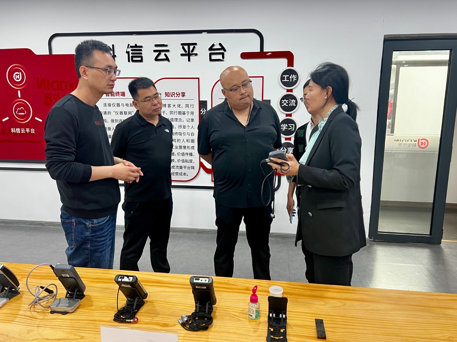 4月16日上午,科電儀器山西地區(qū)總代理鼎泰時代檢測設(shè)備有限公司何總、閆工來到科電總部參觀交流,