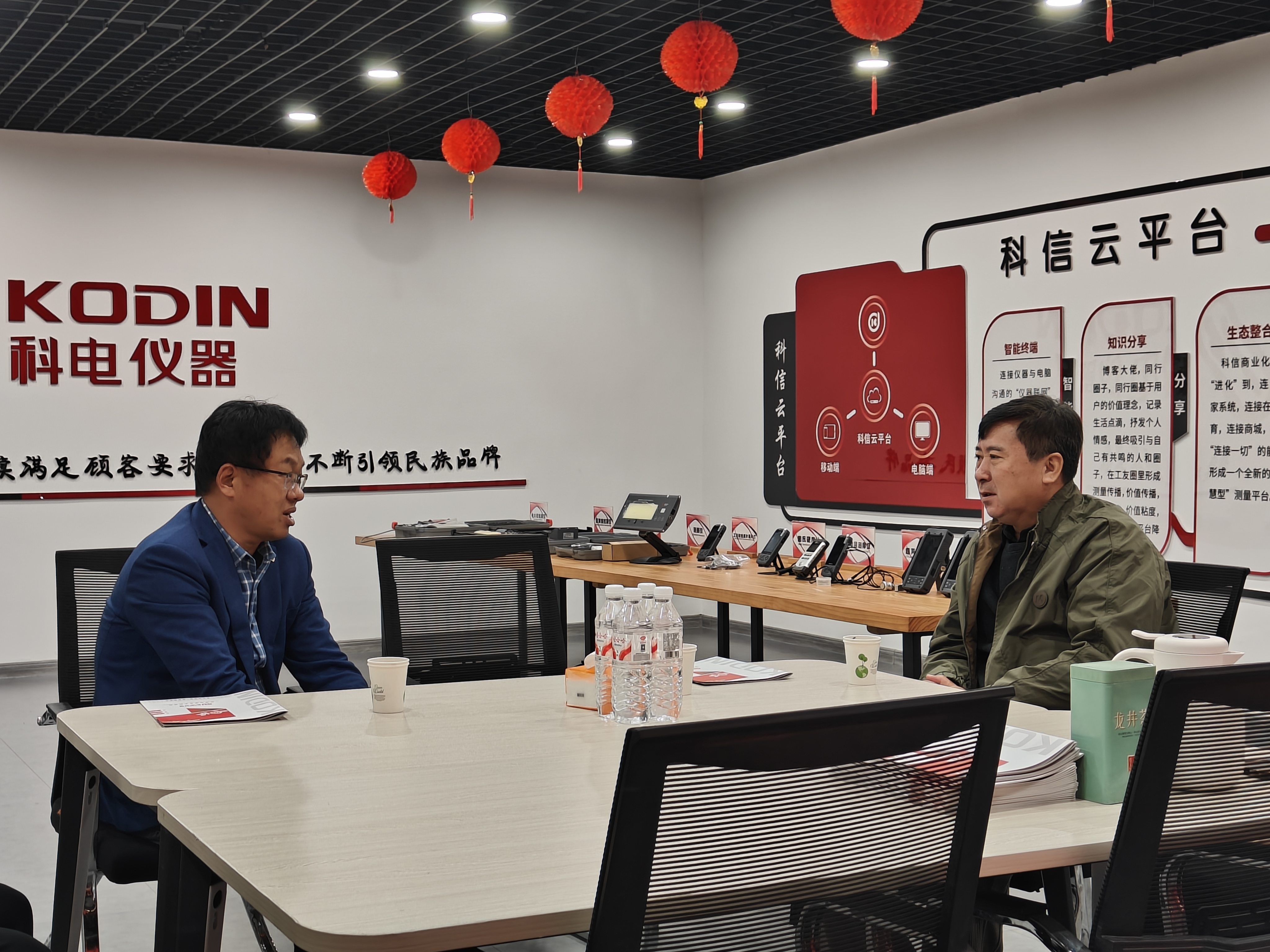 交流伊始,雙方在科電儀器展廳開展會談。