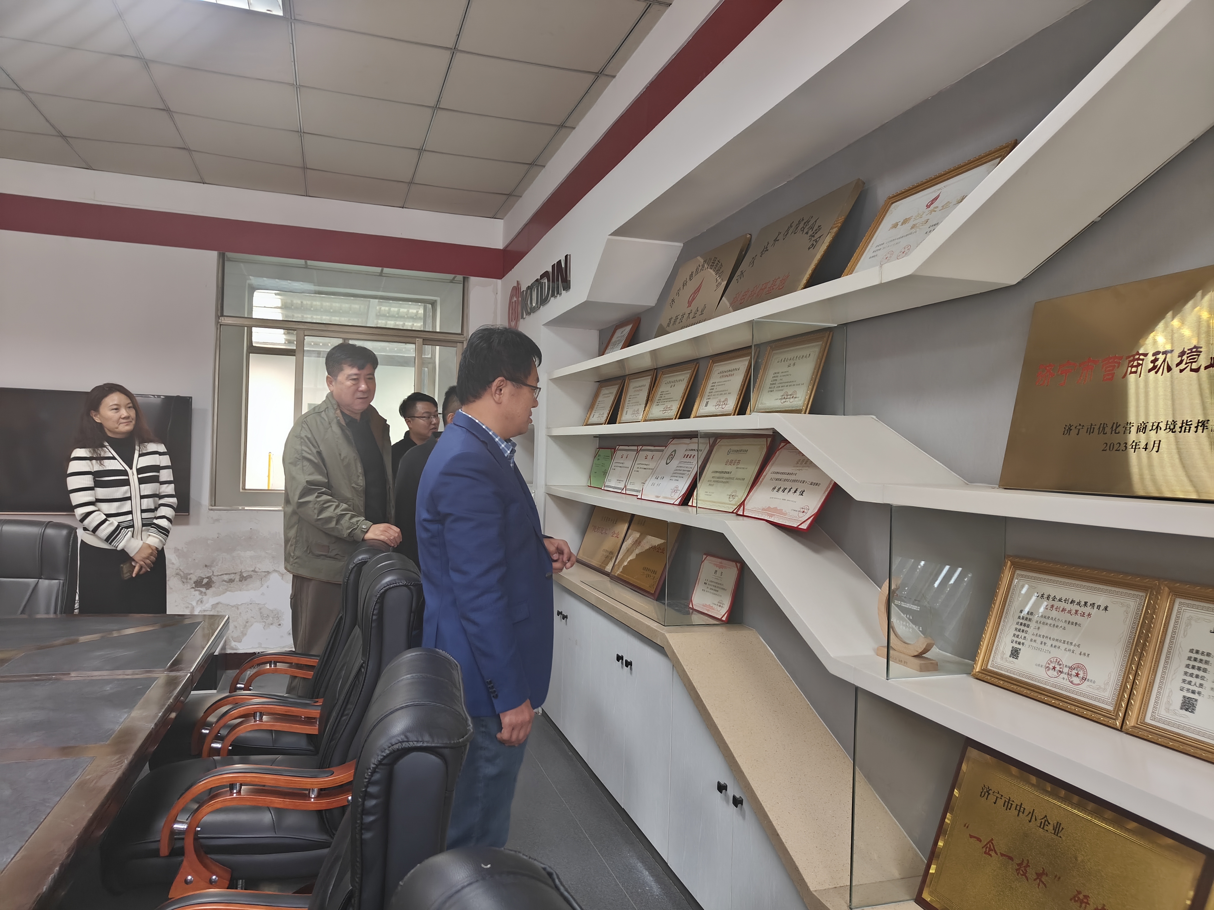 在榮譽室,領(lǐng)導們駐足查看企業(yè)獲得的各類資質(zhì)認證與榮譽獎項,直觀感受科電儀器的行業(yè)認可度;